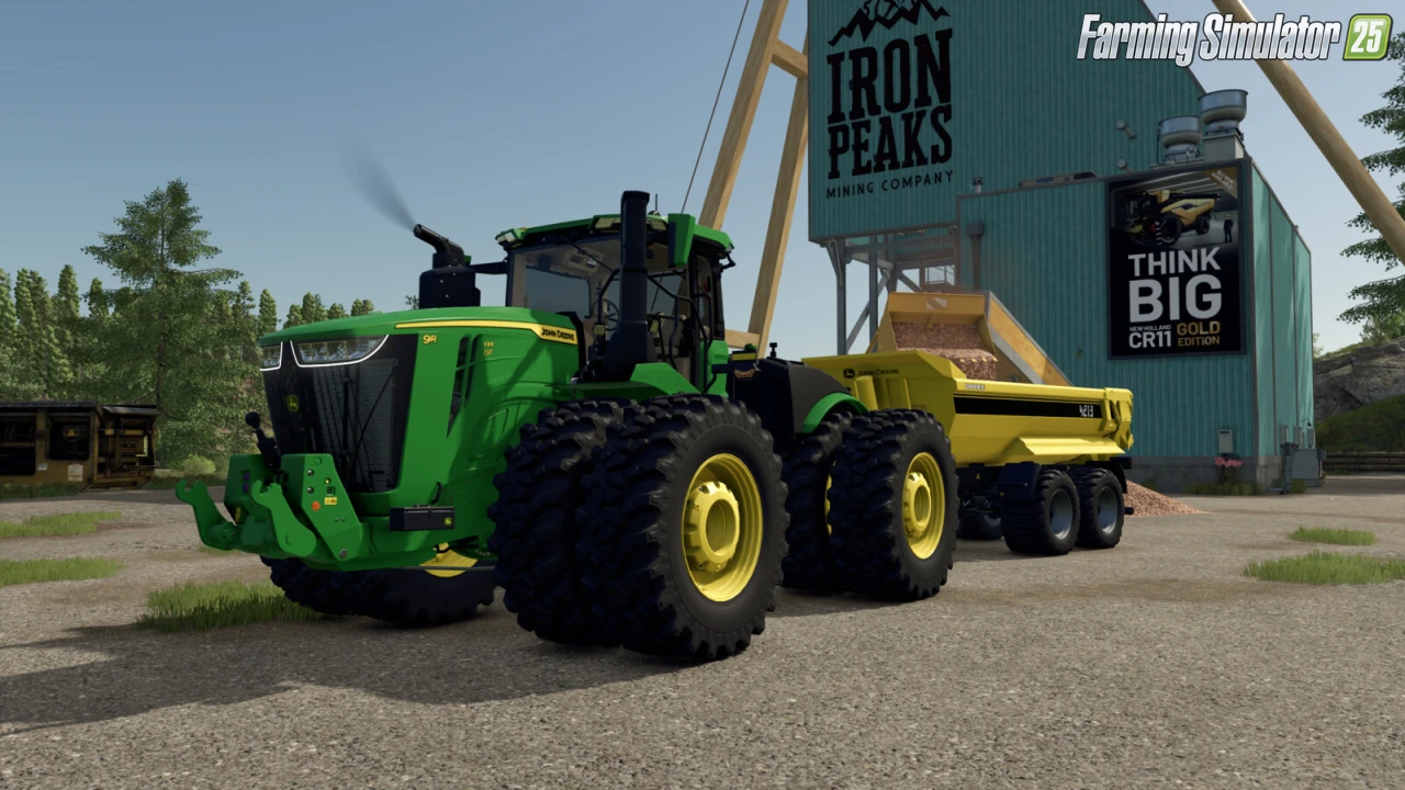 John Deere 4213 Pack for FS25 - this mod brings the fun John Deere 4213 Pack, loosely inspired by a popular building block kit (Lego set), to FS25 players with a highly customizable trailer and two massive large tractors (9R and 9RX series) for epic hauling and fieldwork.