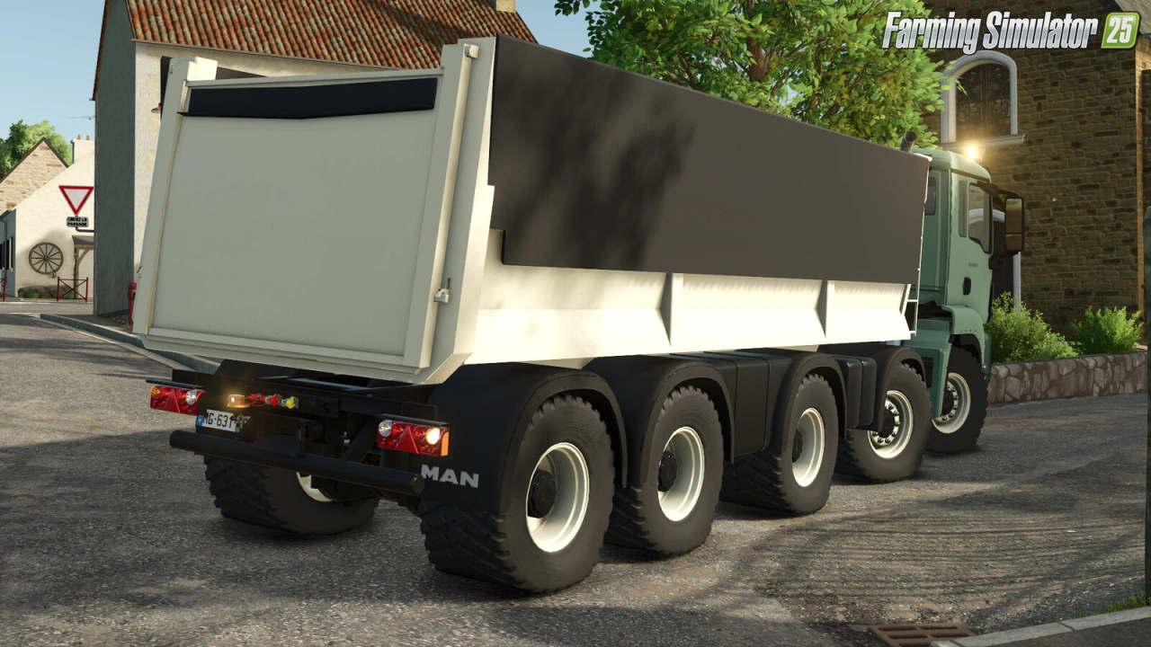 MAN TGS 18.500 Kipper Truck for FS25 - this mod brings the modern and powerful tipper truck to FS25 players as a standalone heavy-duty hauler, perfect for bulk material transport, gravel, sand, manure, silage, and construction site work across European and American maps.